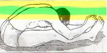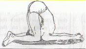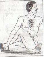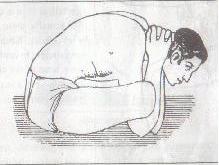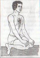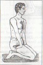 11)VAJRASANA (Thunder posture): Bend the right leg at the knee and direct the foot backwards in such a way it does not touch the right thigh. supporting the weight on both the hands, direct the left foot backward in the same way. Now gradually sit on the floor.Raise the hands and place them on the knees.In the beginning practice this asana very cautiously.Injury may result from trying to squat forcibly.Duration-half a minute. Practice four times. |