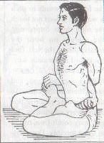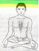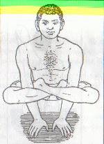 12)SIDDHASANA (sidha posture): Press the muladhara cakra with the left heel. Then press the svadhisthana cakra with the right heel.Place the hands palm up on the respective knees.Duration-as long as you wish. |