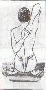 buttock. Place the left hand on the spine. Then bring the right hand backward over the right shoulder and interlock the fingers of the hands in a chain-like fashion.