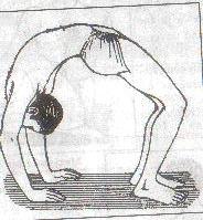 and the palms,raise the head and the trunk.The body will assume the shape of a wheel in this asana.Duration-half a minute.Practise four times.